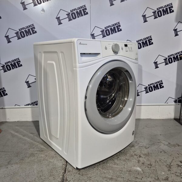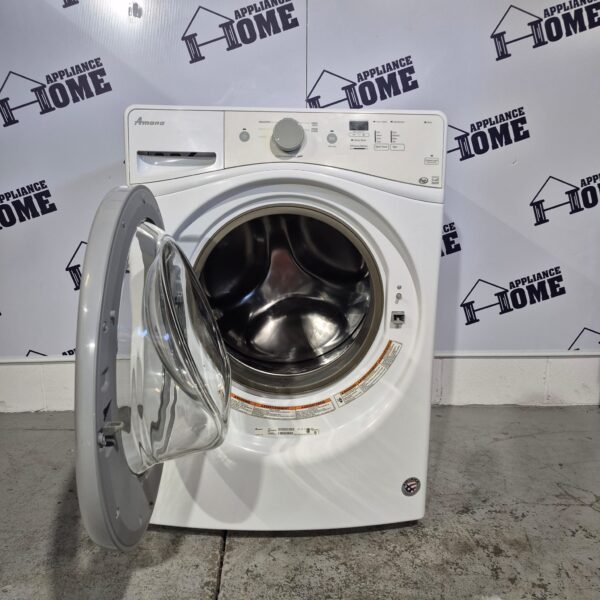 Amana Washer NFW5800DW 27″ Front Load, stackable, 5.0 cu. ft. 7 Cycles, 4 Temperature, water heater, 1200 RPM, White color, Used Refurbished.