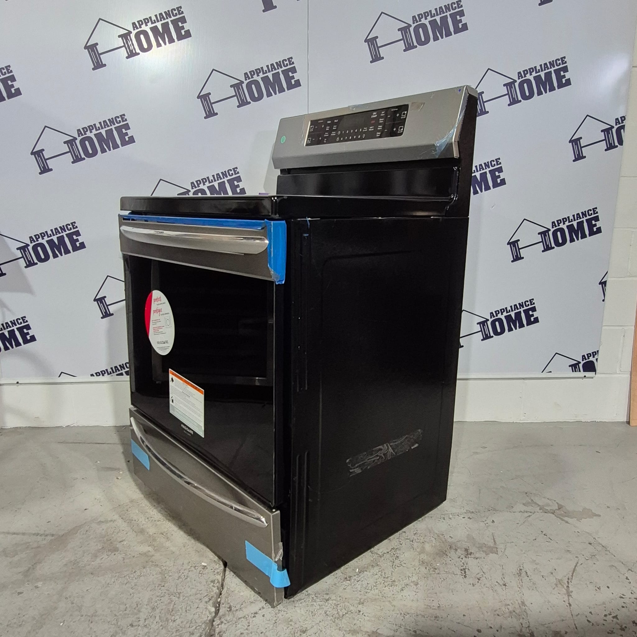 Frigidaire Gallery stove stainless 30″ GCRI305CAF, induction, electric, glass top, 4 burners, 5.4 cu ft, convection, Air fry, self-cleaning, storage drawer, Stainless Steel color, Used Refurbished.