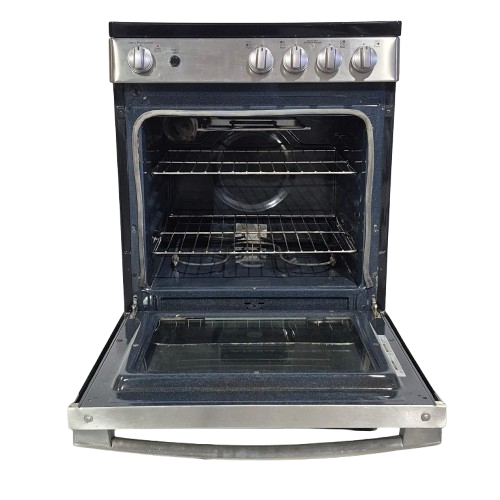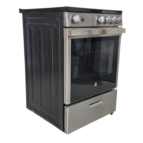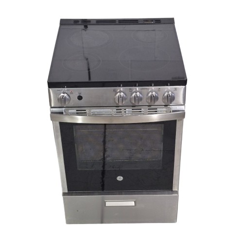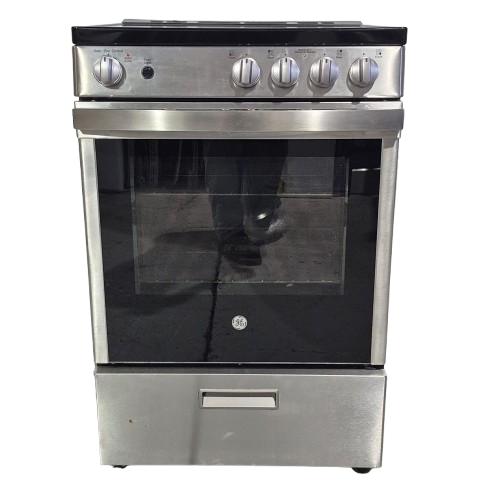 GE Electric Stove JCAS640RMSS 24″ condo size, glass top 4 burners, 2.9 cu ft Storage Drawer, 1 Ovens, Stainless Steel color Used