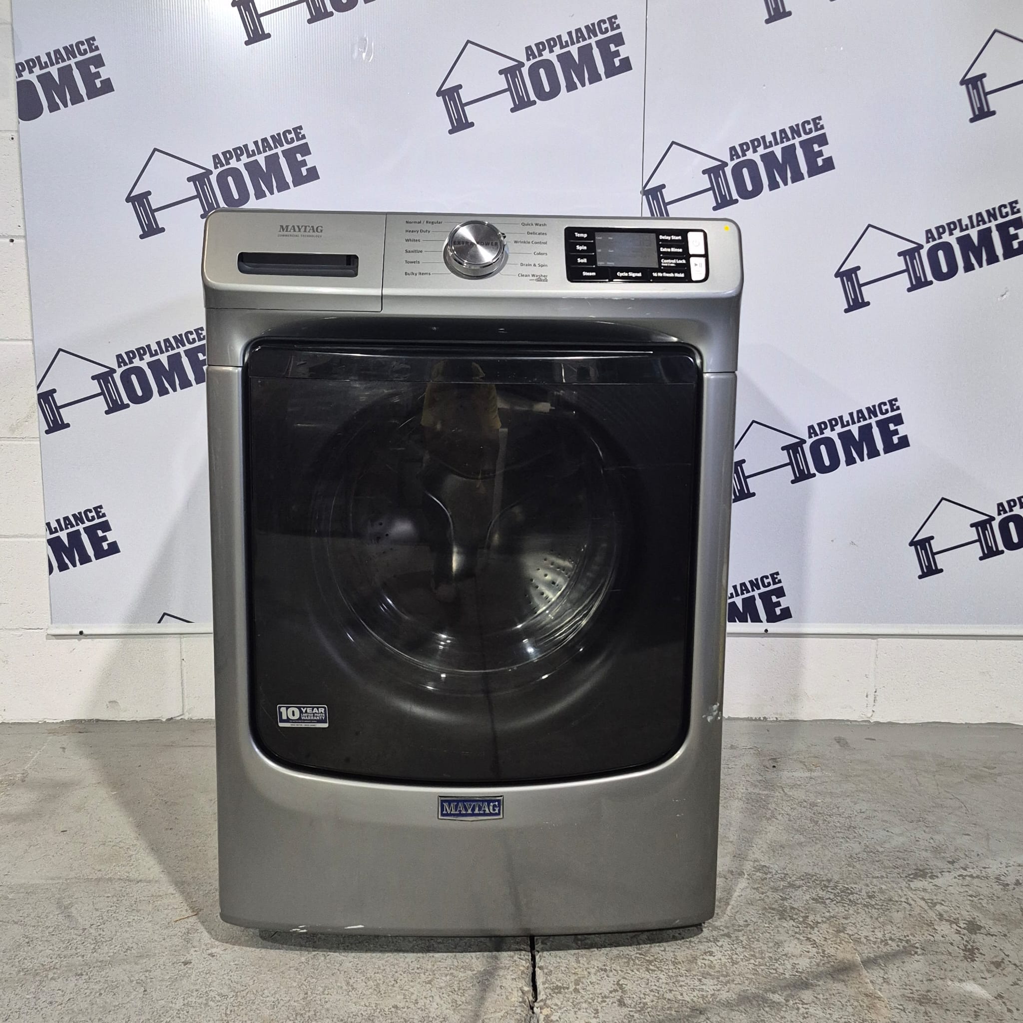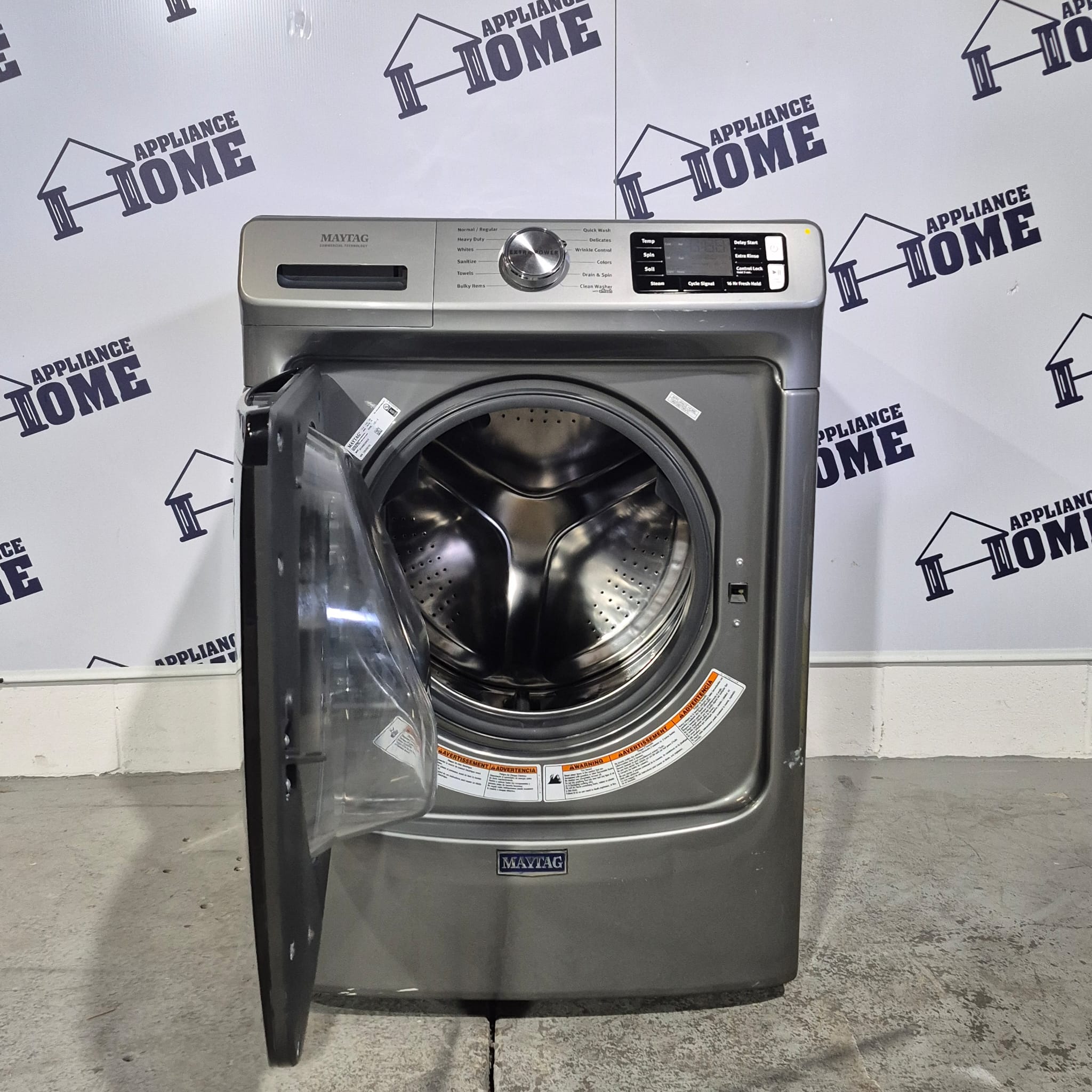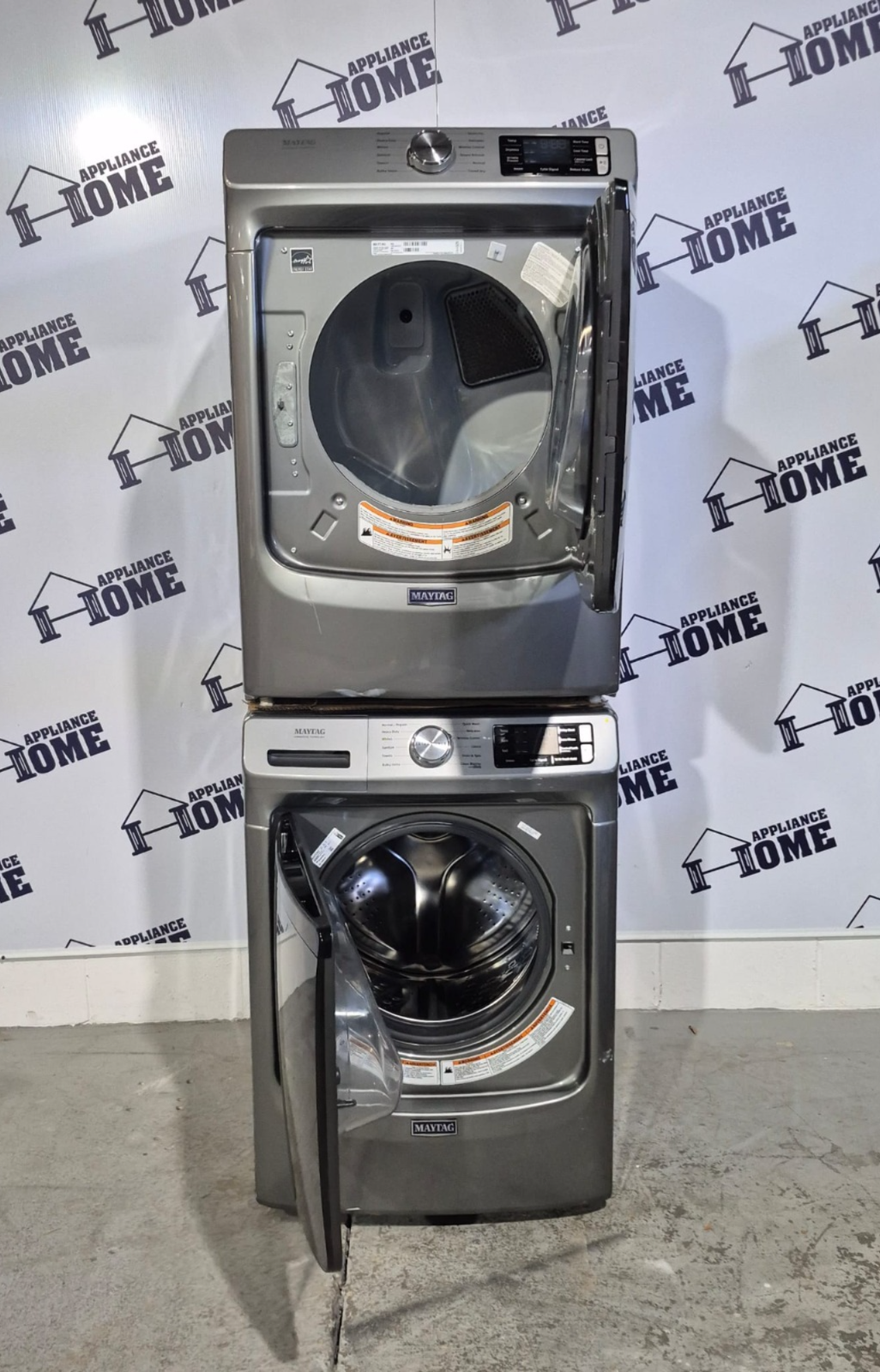 Step up to premium laundry features with this refurbished Maytag MHW6630HC and YMED6630HC front load set. This 27-inch pair combines large capacity and advanced steam technology in a modern grey finish, offering the performance of a new, high-end model at a significant value. Both units are stackable (kit not included) and have been professionally refurbished, tested, and certified for reliable operation.