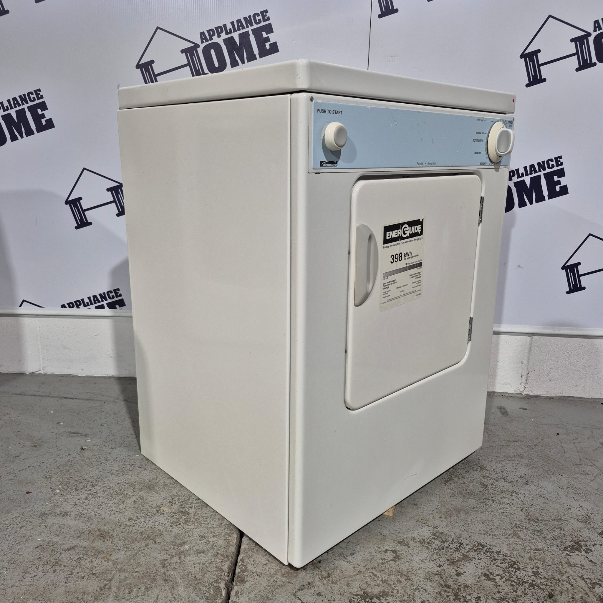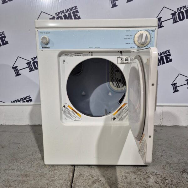 Kenmore Dryer 110c84722400 24″ Electric, Front load, Stackable, 3.6 cu. ft. compact size, 5 Cycles, 3 Temperature, 3 ways vent, 120 Volts, White color, Used Refurbished.