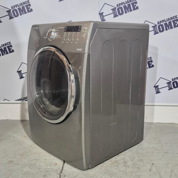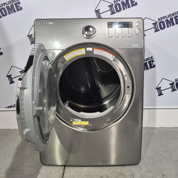 Samsung Electric dryer 27″ DV350AEP, stackable, steam, front load, 5 temperatures, 13 cycles, Steel Drum, Stainless steel, Used Refurbished.