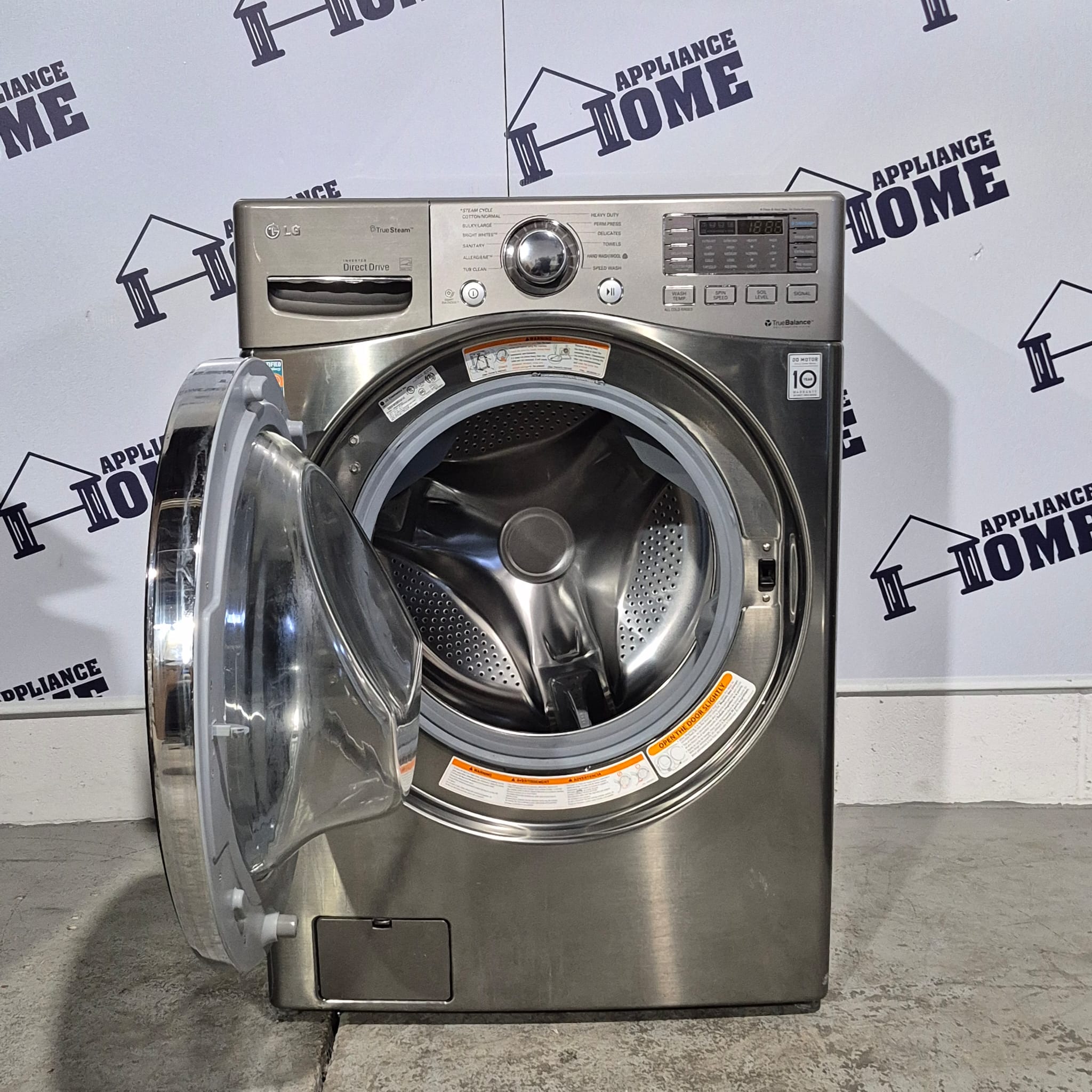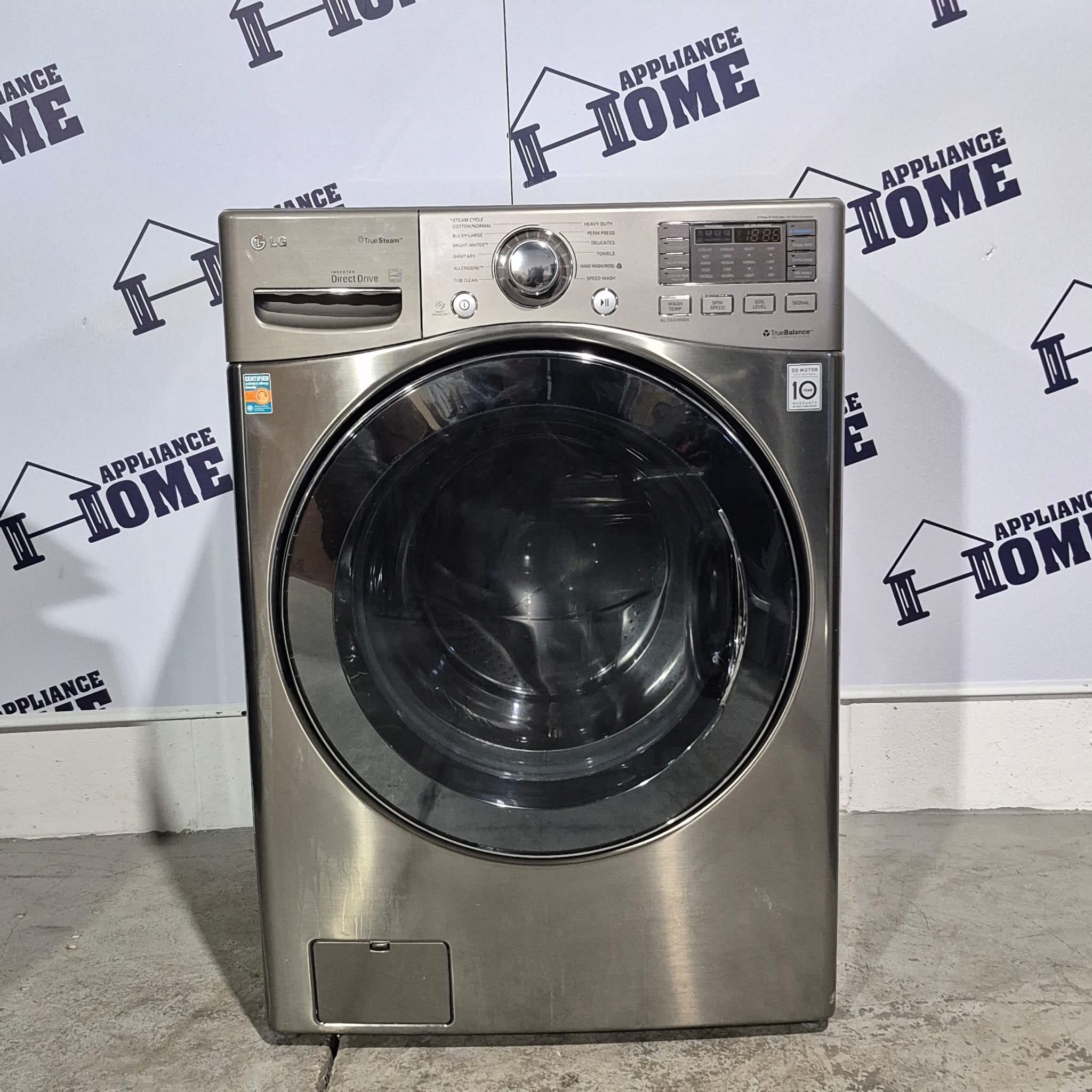 LG Washer WM3470HVA 27″ Front Load, Stackable,  4.6 cu. ft. Steam Clean, 12 Cycles, 5 Temperature, 1200 RPM, Water Heater, Stainless Steel color, Used Refurbished.