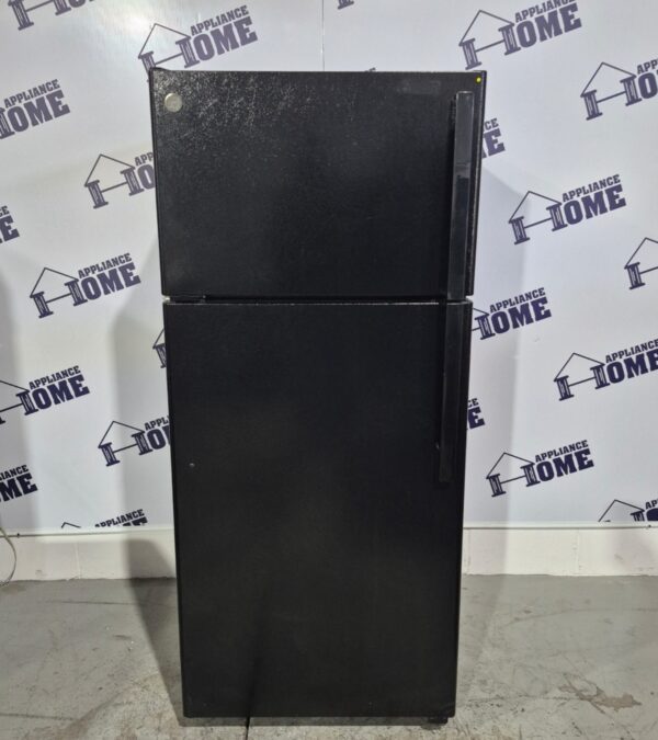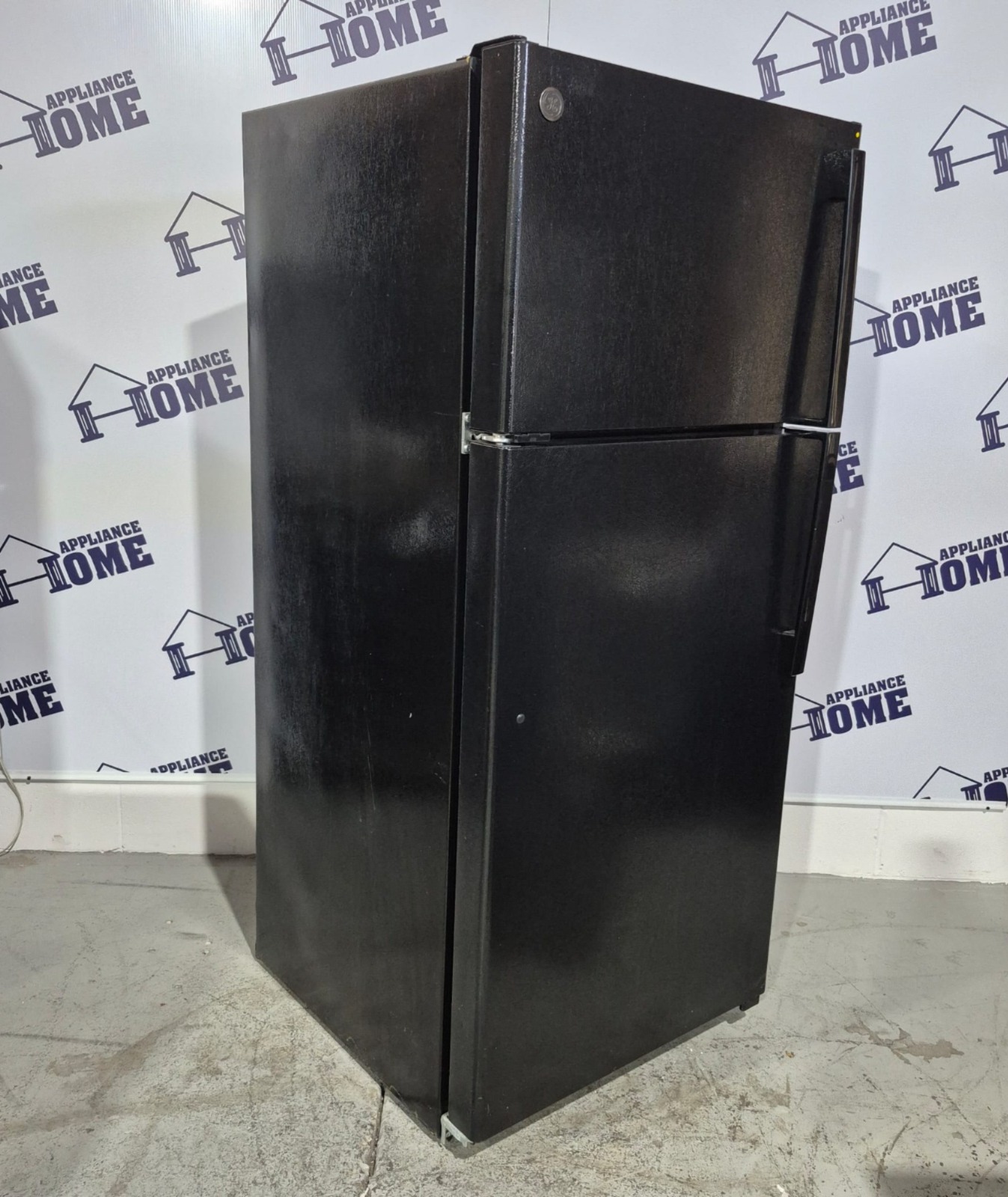 GE Fridge GTE17GTNRBB 28″ top Freezer frost free, short height, 16.6 cu ft ENERGY STAR, Optional Ice Maker, Black color Used Refurbished