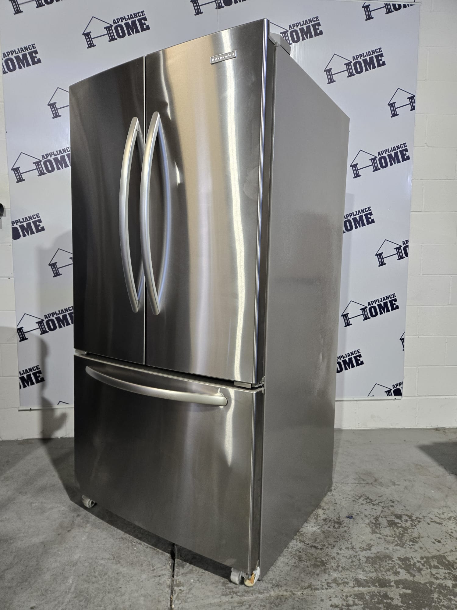 Elevate your kitchen with the premium style and substantial storage of the KitchenAid KBFS25EWMS 33-inch French Door Refrigerator, professionally refurbished for reliable, high-end performance. This spacious stainless steel appliance offers a generous 24.8 cu. ft. of intelligently organized capacity, combining the fresh food accessibility of French doors with the convenience of a bottom freezer drawer. Designed for families and entertainers, it delivers the exceptional craftsmanship, advanced features, and sleek design associated with the KitchenAid brand, now at a remarkable value.