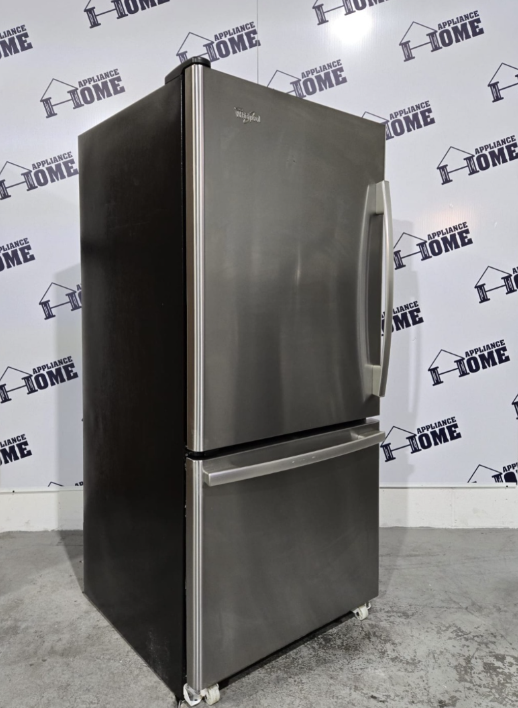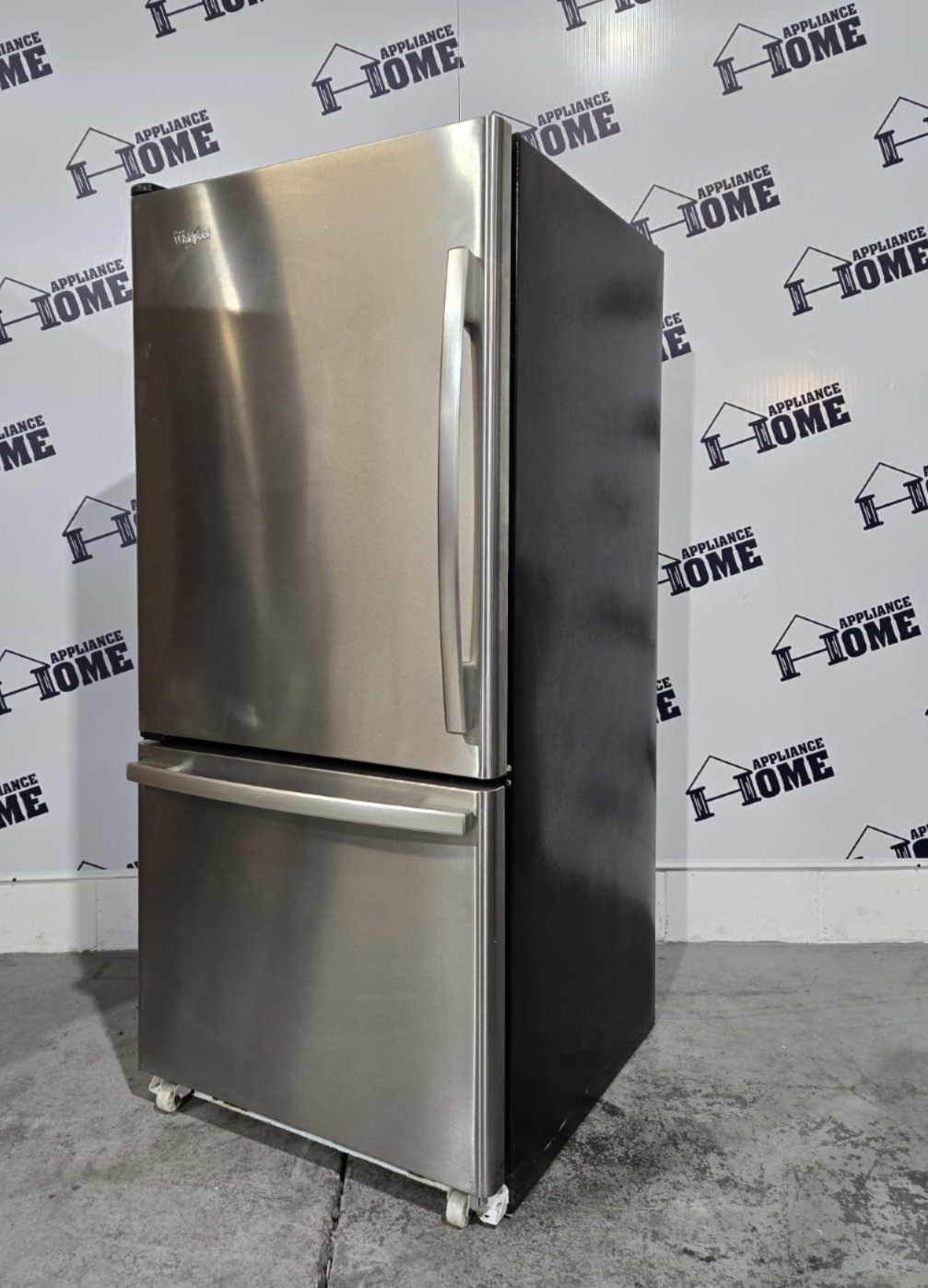 Professionally refurbished Whirlpool 30″ bottom-freezer refrigerator with 18.5 cu. ft. capacity. ENERGY STAR efficient and finished in sleek stainless steel, offering modern style, reliable performance, and easy access to fresh foods.