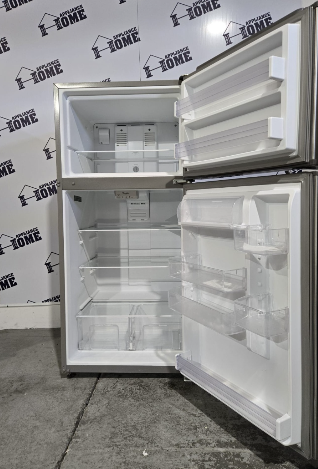 Upgrade your kitchen, basement, or rental space with this refurbished Whirlpool WRT549SZDM 30-inch top-freezer refrigerator. With a generous 19 cu. ft. capacity, this standard-width model offers plenty of storage for groceries while fitting most traditional kitchen openings. Its sleek stainless steel finish and classic top-freezer layout make it a practical, modern choice for homes, condos, apartments, or secondary kitchens.
