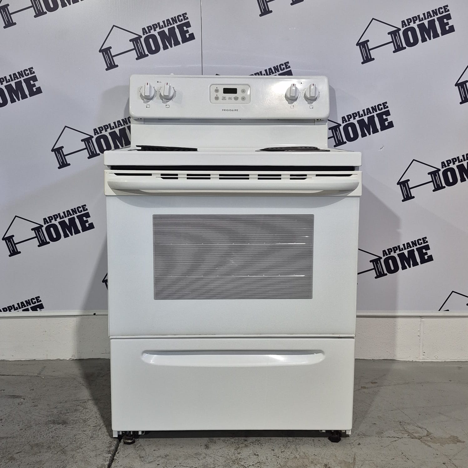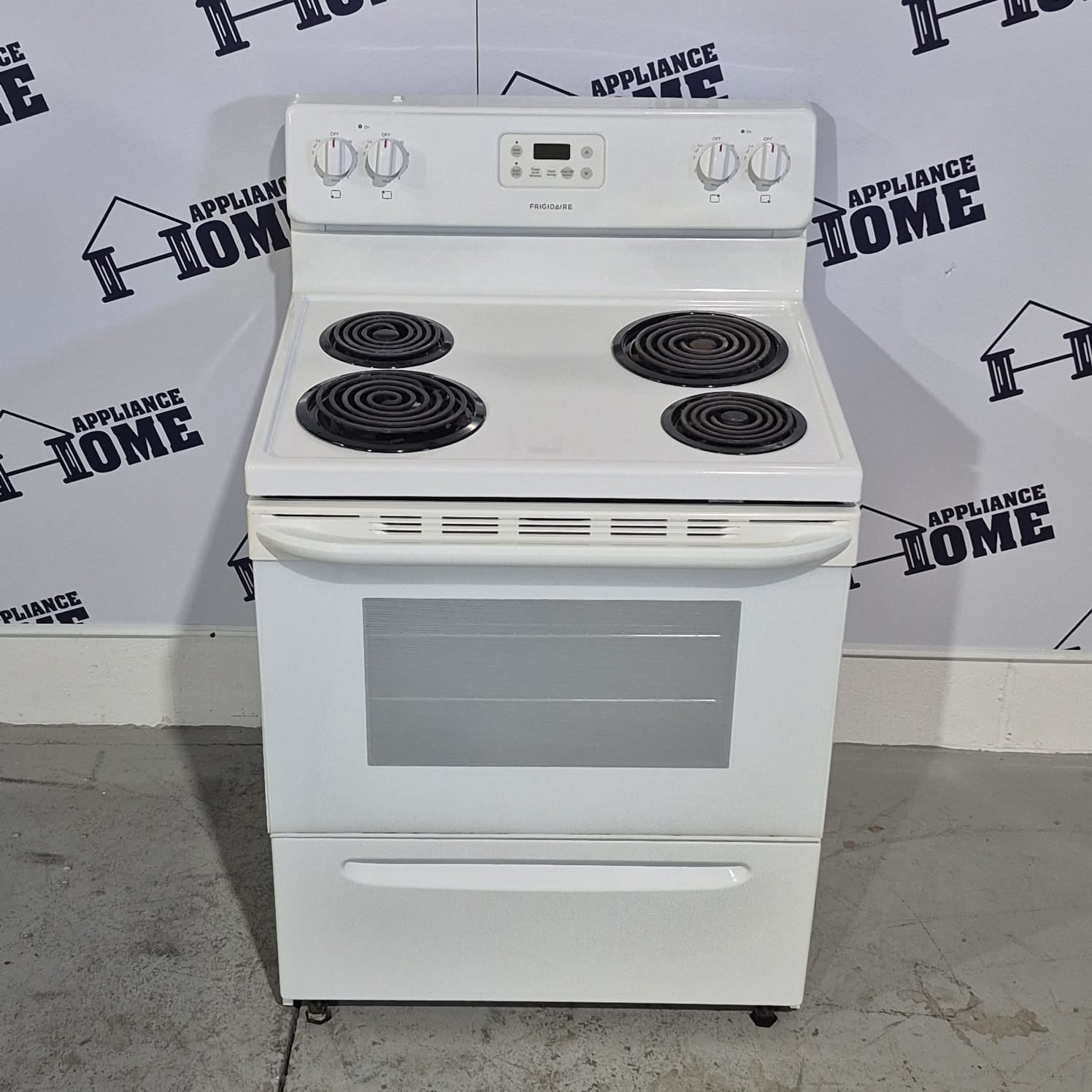 Frigidaire Stove CFEF3012PW 30″  Electric, freestanding, Coil element, 4 burners,  4.8 cu. ft. Storage Drawer, White color, Used Refurbished.