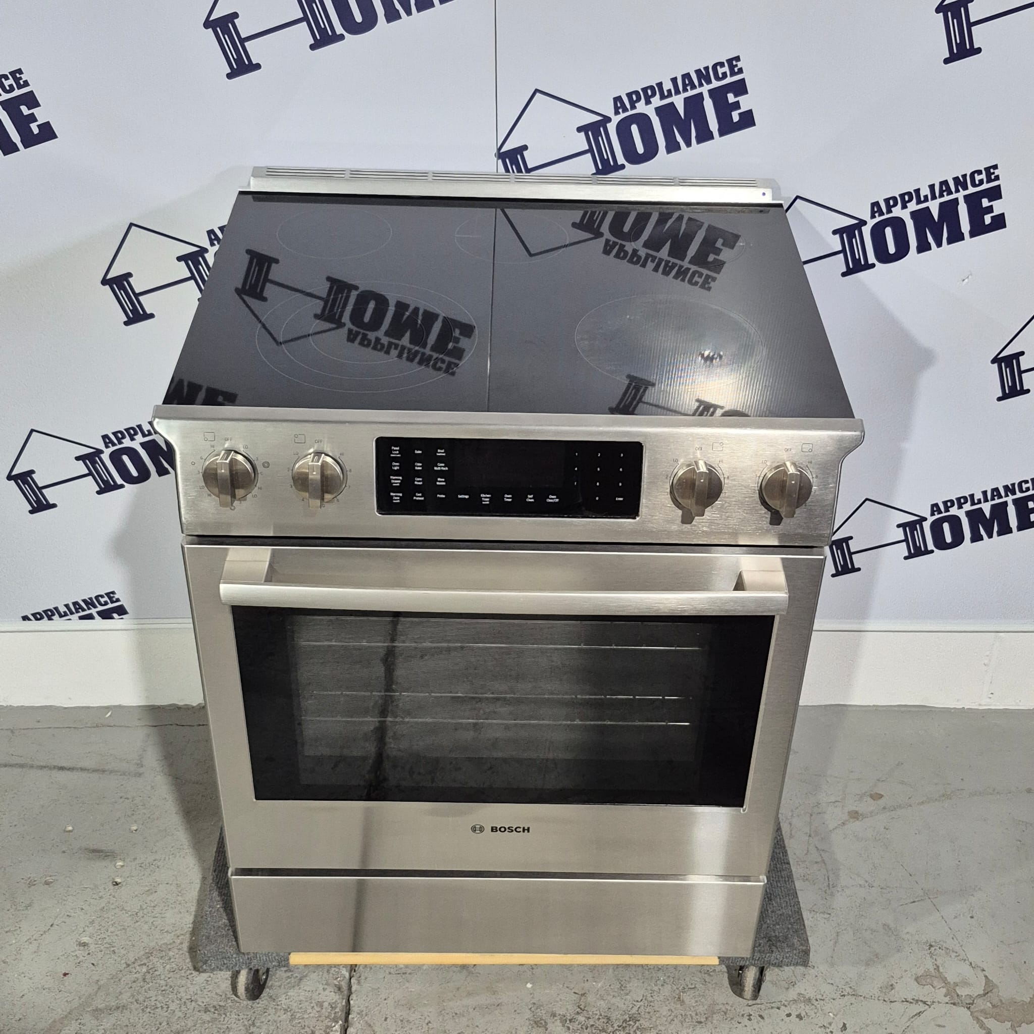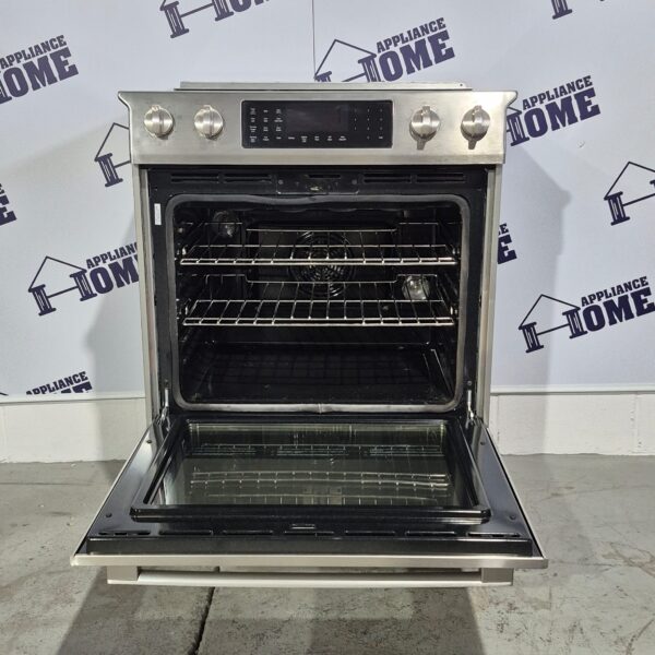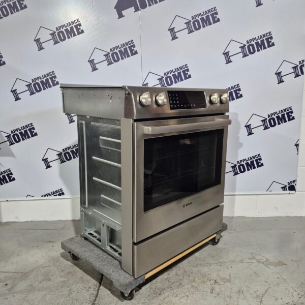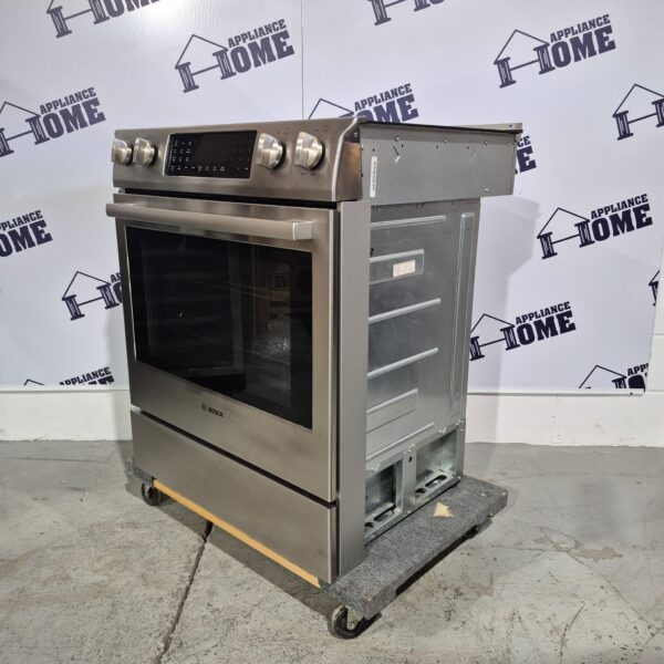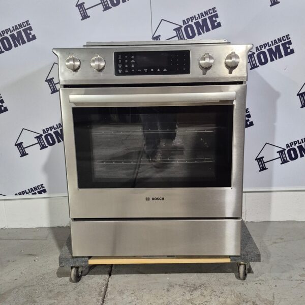 Bosch Benchmark Series Stove HEIP054C 30″ Electric, 5 burners, Built-in, slide-in, Self Clean, Convection, 4.6 cu. ft. Warming Drawer, Top of the line, Stainless Steel color, Used Refurbished