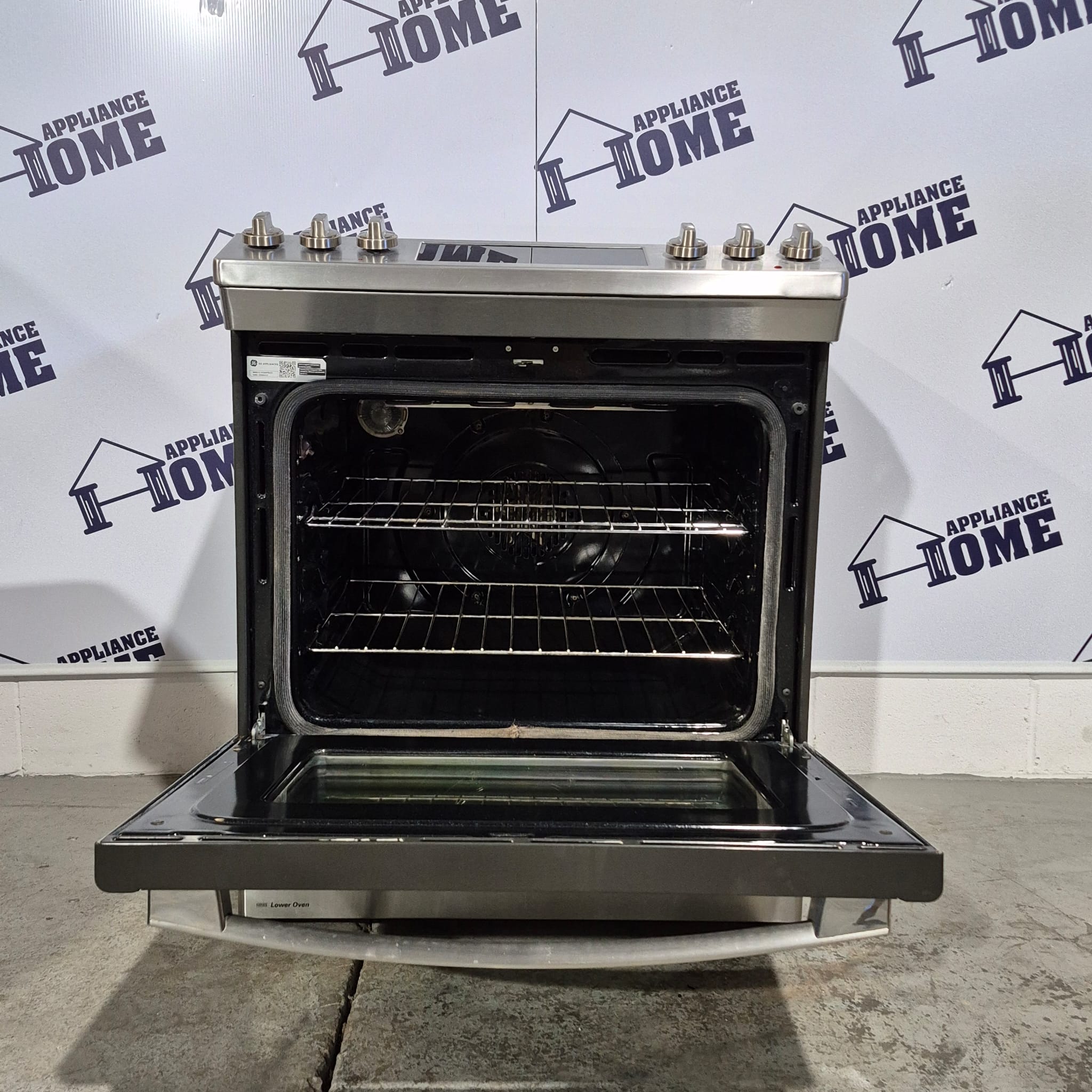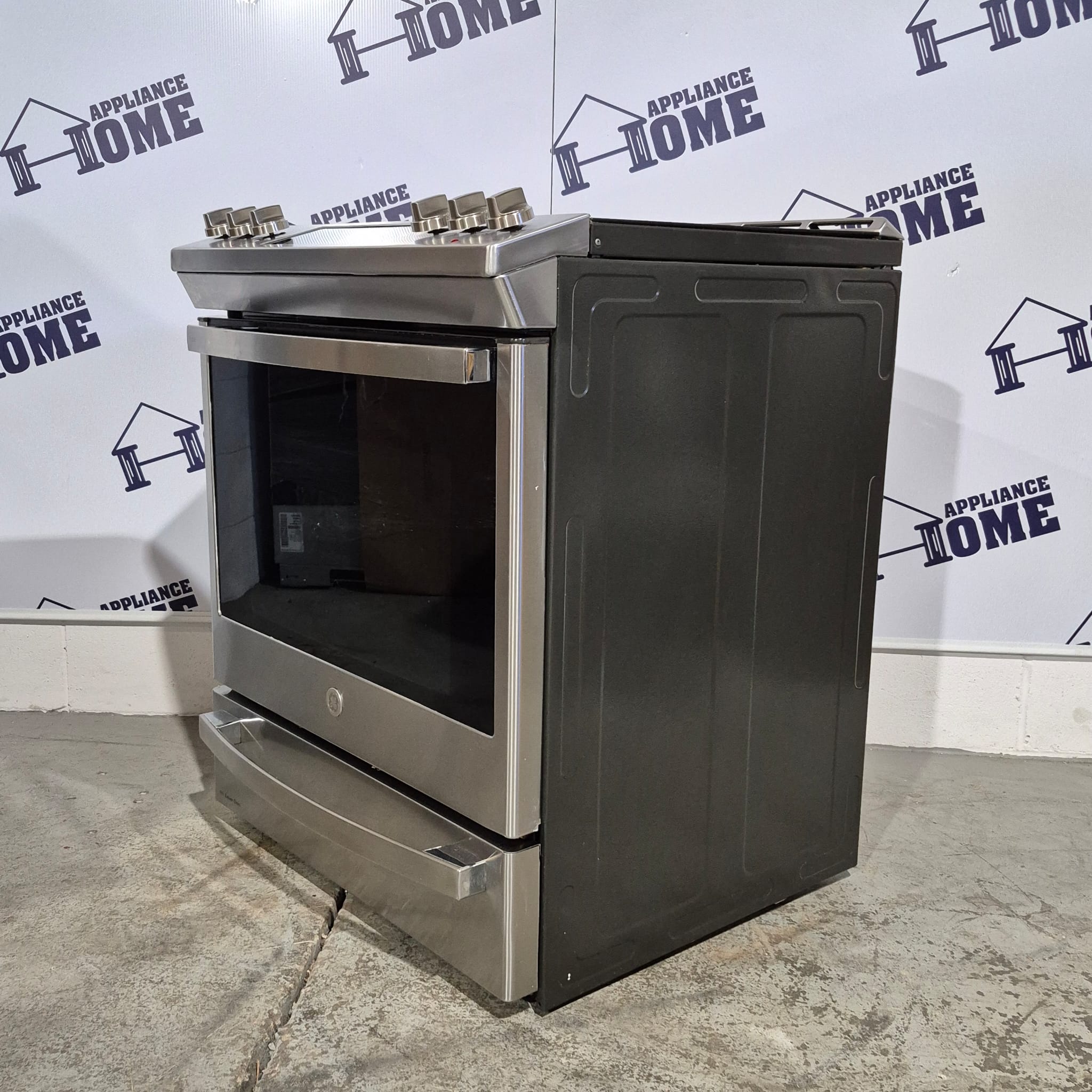 The 30″ GE Profile PCS940YMFS Slide-In Electric Range features a 5-element glass cooktop, 5.3 cu. ft. convection oven, and built-in Air Fry mode—professionally refurbished for reliable, like-new performance. Perfect for home chefs, it delivers crispy results, precise cooking, and a sleek built-in design.