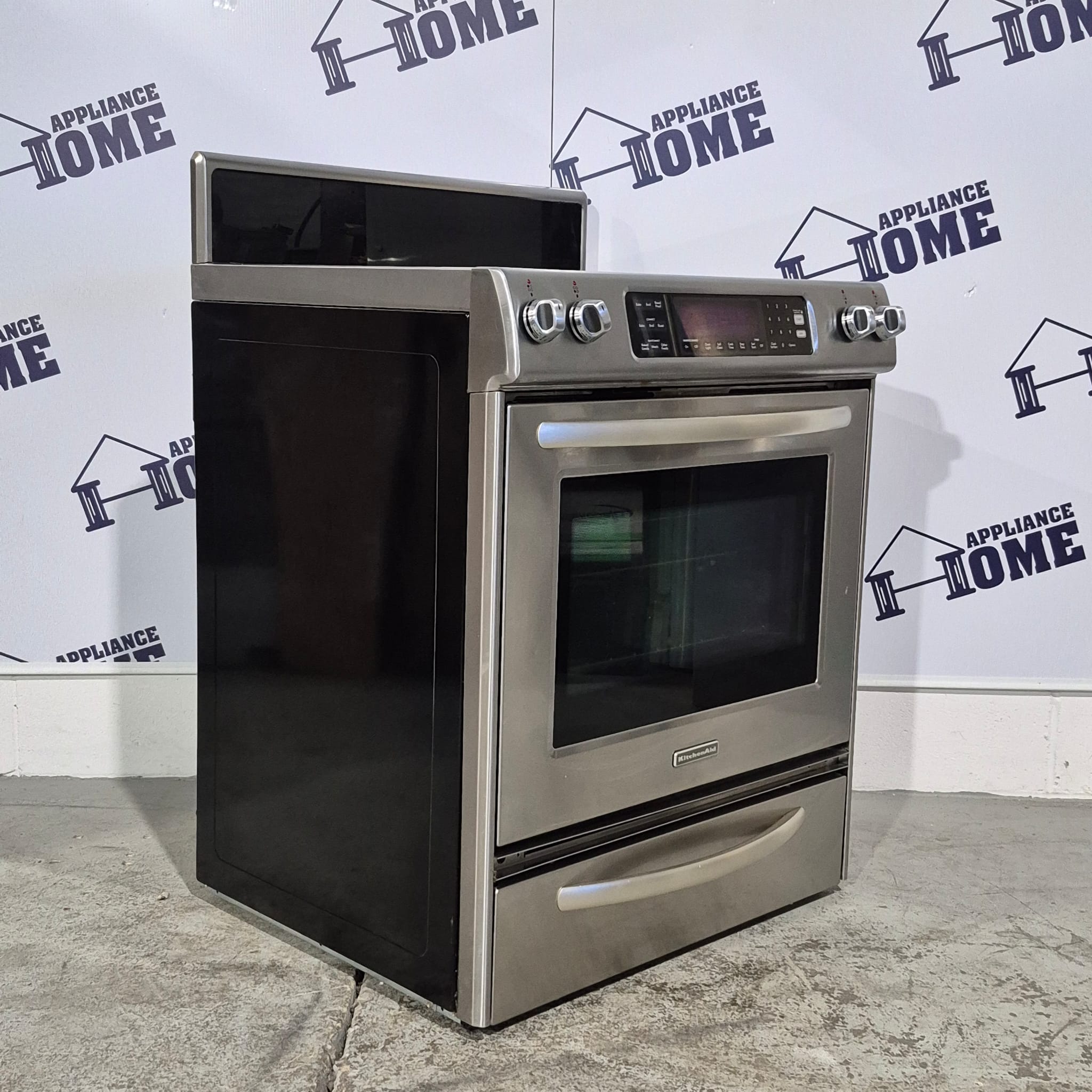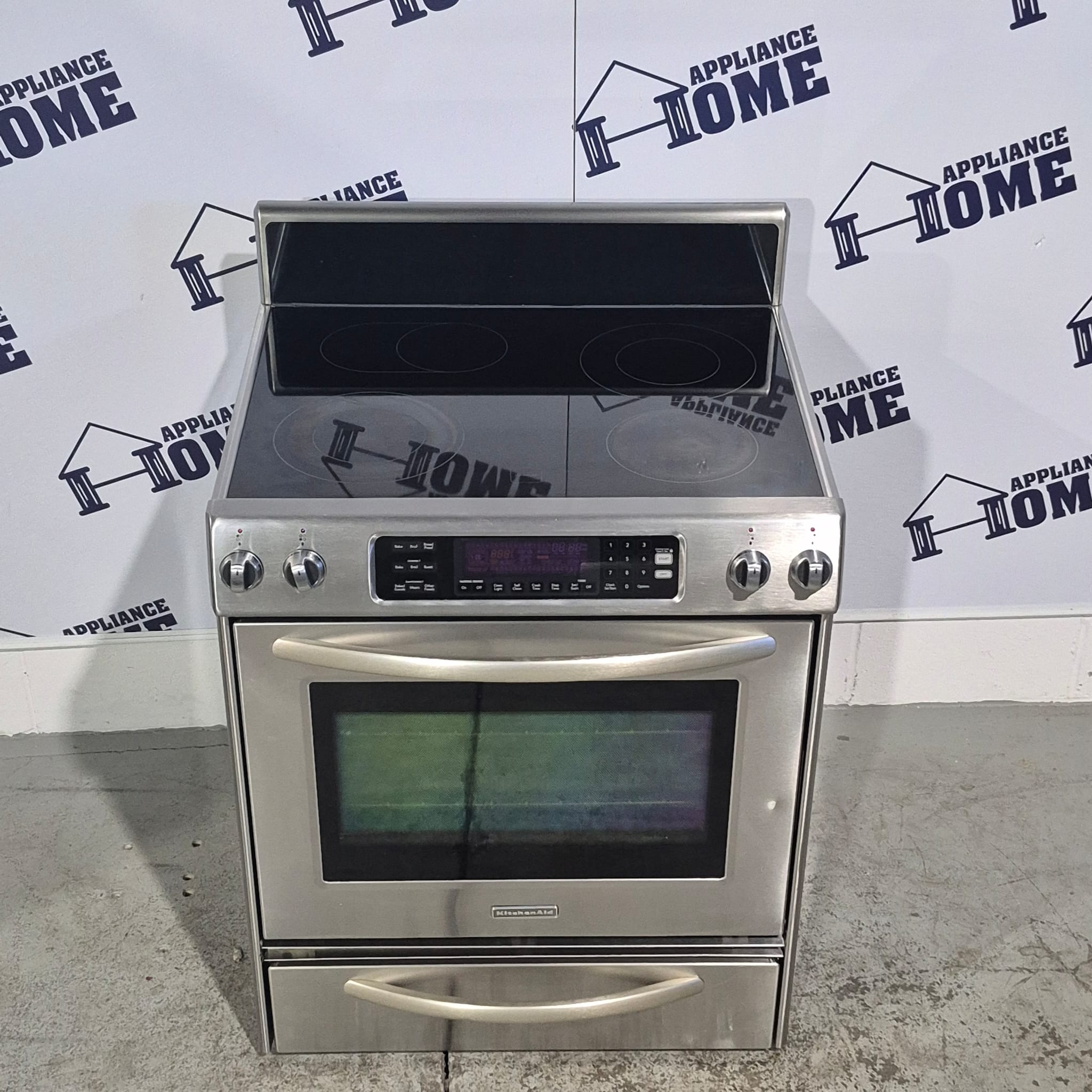 The KitchenAid YKERS807SS slide-in range delivers professional features like convection cooking and a warming drawer in a durable stainless steel package. Upgrade your kitchen with this high-performance refurbished electric range and enjoy exceptional value.