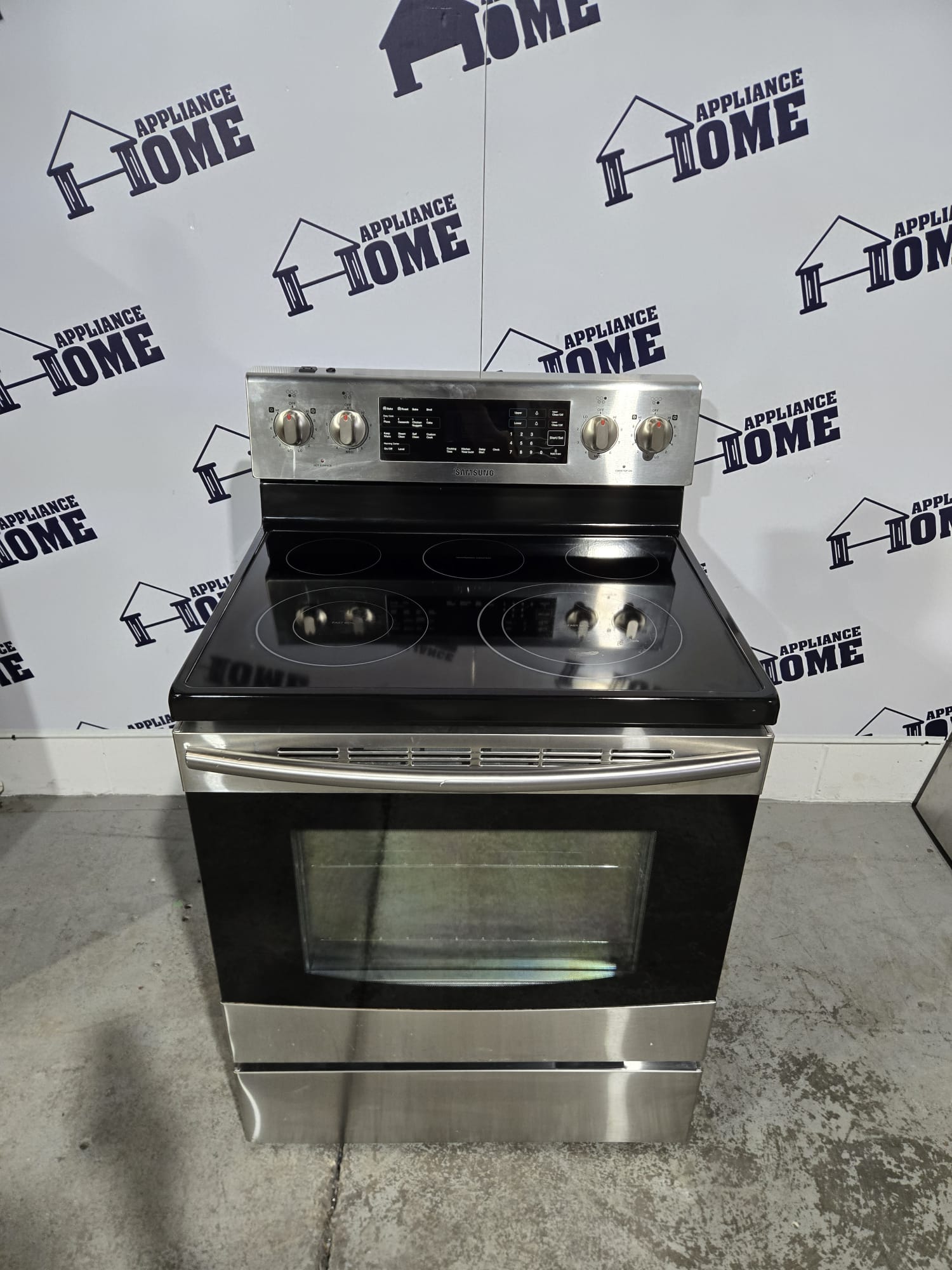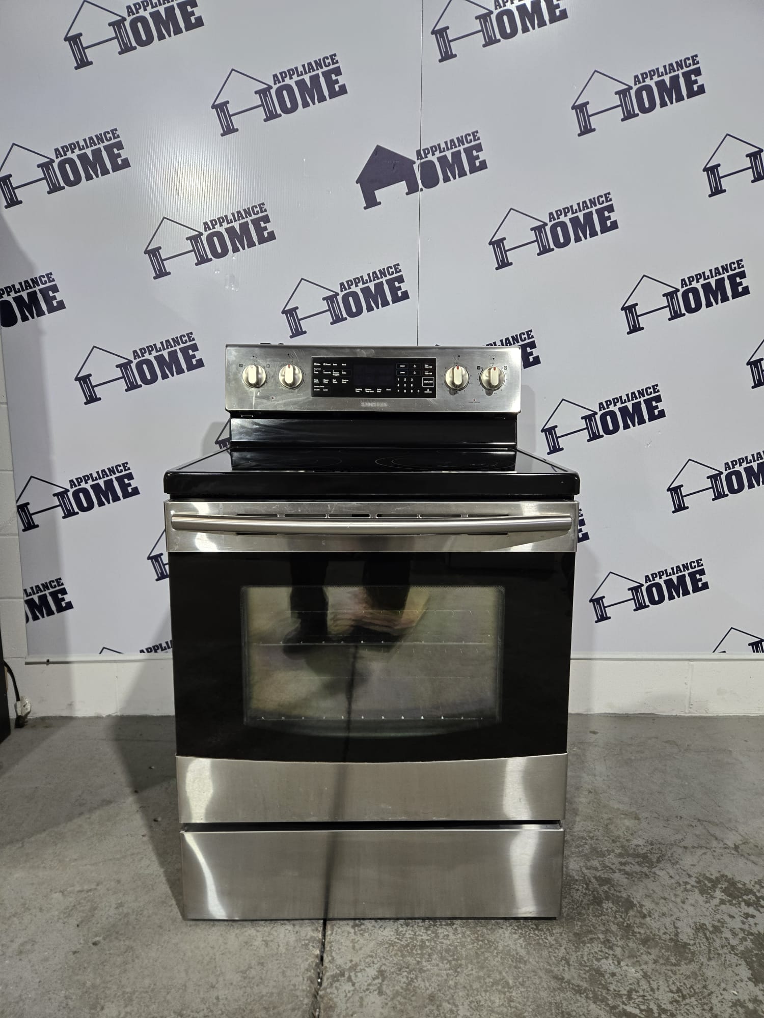 Upgrade your kitchen with the Samsung NE595R1ABSR 30″ Electric Stove, a professionally refurbished and tested range designed for high performance and modern cooking. Featuring a sleek glass cooktop with 5 burners and a spacious 5.9 cu. ft. convection oven, this appliance delivers even baking, fast heating, and versatility for everything from daily meals to large family cooking. The stainless steel finish adds a clean, contemporary look to any kitchen.
