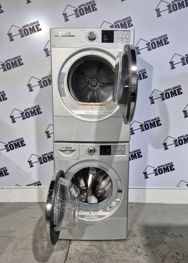 Bosch 500 series washer and dryer 27″ stackable, front load, Grey color used, refurbished