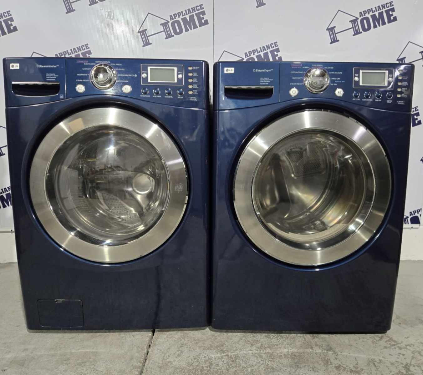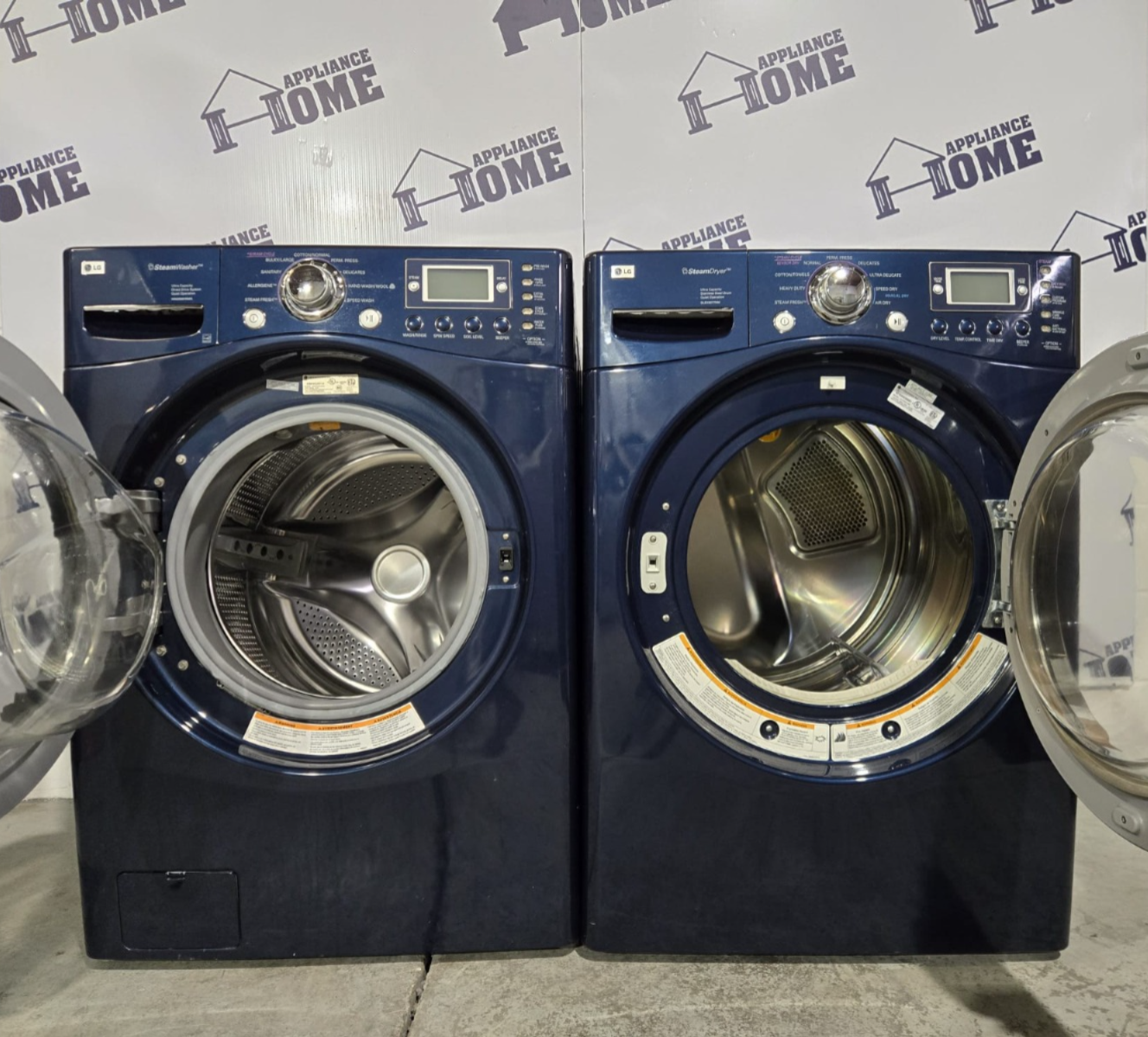 This refurbished LG washer and dryer set in blue delivers a perfect combination of essential features, ample capacity, and unique style. Choose this pair for a practical and aesthetically pleasing laundry solution.