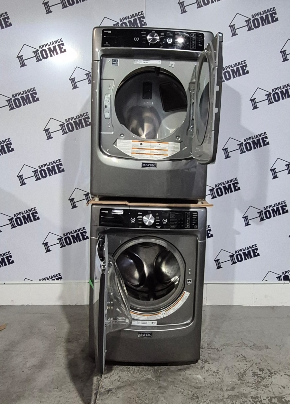 Maytag washer dryer MHW8100DC-YMED8200FC stackable, front load, great quality, quiet, steam does not include staking kit, used.